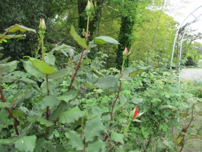 一足先に咲いた薔薇もまだかな?まだかな?と待ち侘びているようです🌹