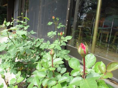 庭や軒下の薔薇の花たちもぷっくらと膨らんで