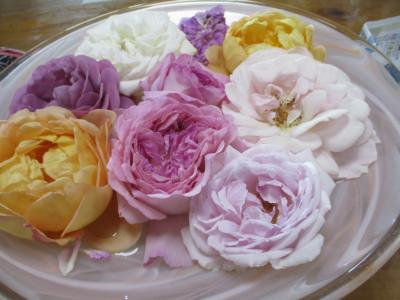 テーブルの上にもバラの花でいっぱいです