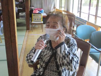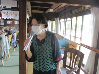 コロナ禍なので縁側に移動して距離を取って歌っていただき