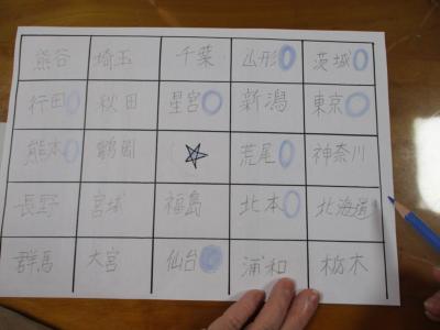 さぁ、都道府県名を書き入れマスが埋まりましたらビンゴスタートです