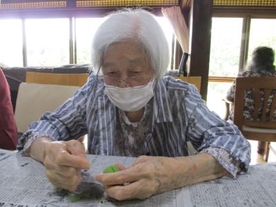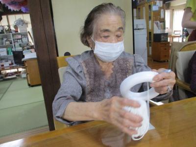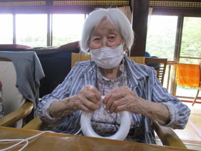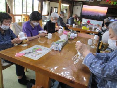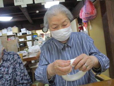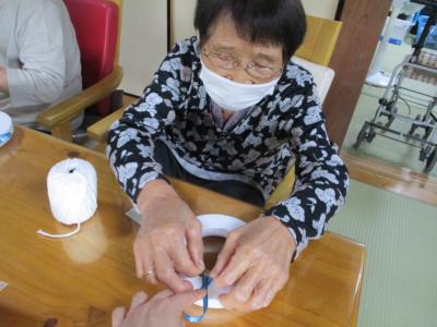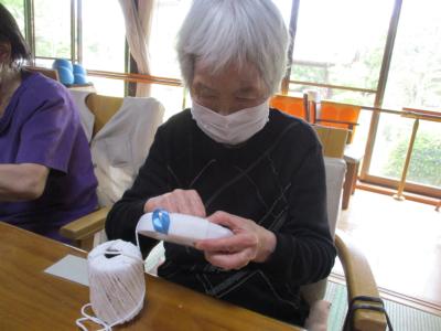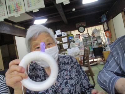 リース型の土台にコットンヤーンをなるべく隙間なく