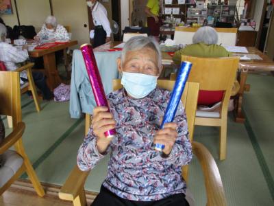 今日の機能訓練では、先日に愛の父と母で協力して作った