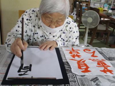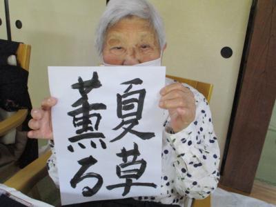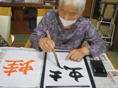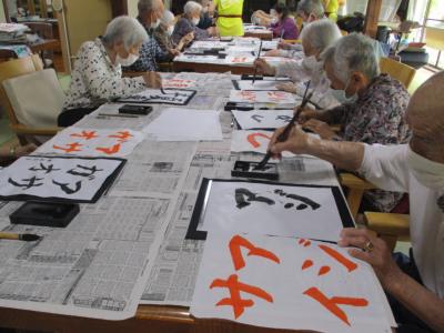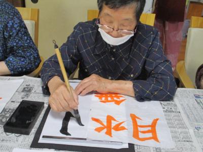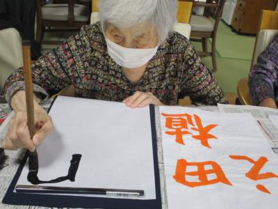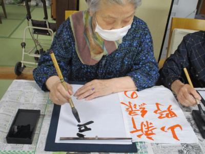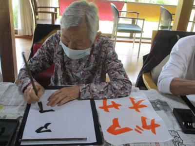 月一恒例の書道の時間は父と母に自信と達成感を味わっていただけた時間となりました