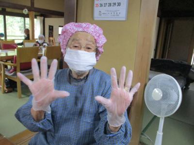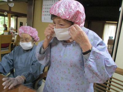 エプロン、キャップ、手袋をして、最後に手指消毒を行いました!