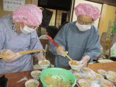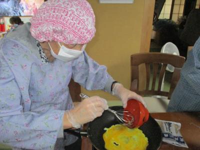 こちらのお母さんは、春雨サラダに入れるタマゴを作って下さっています