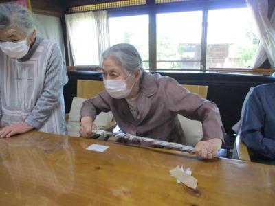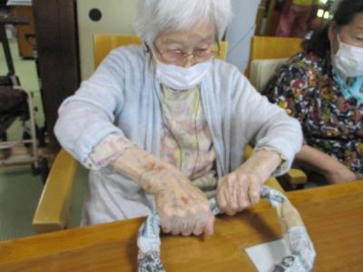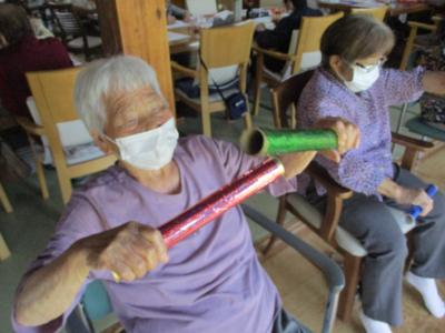 新聞紙をクルクル丸めた輪っか。大会頑張ってくださいね