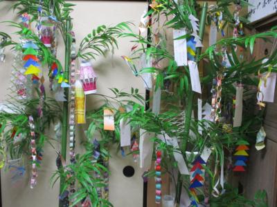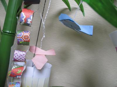 「七夕の日に織姫がピンクに乘って、彦星が青に乘って二人が逢えるように作ってきたよー」