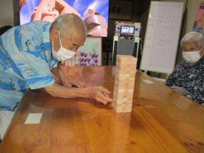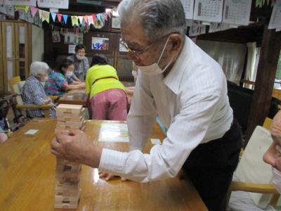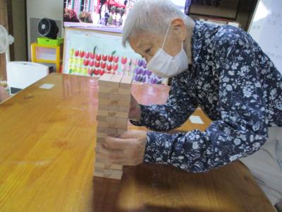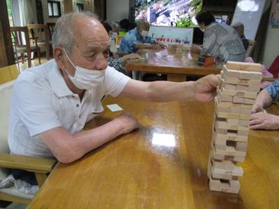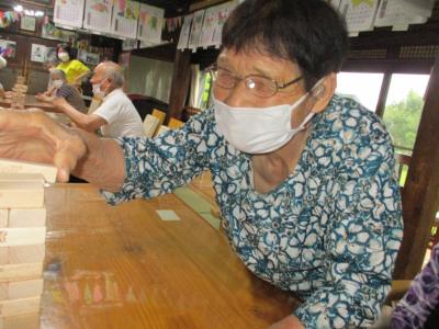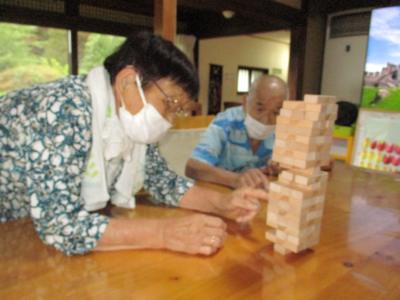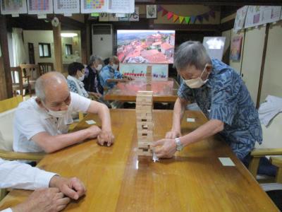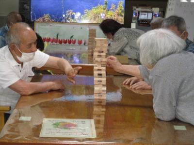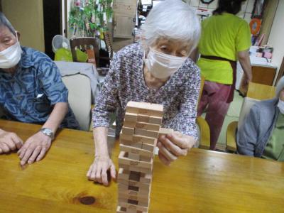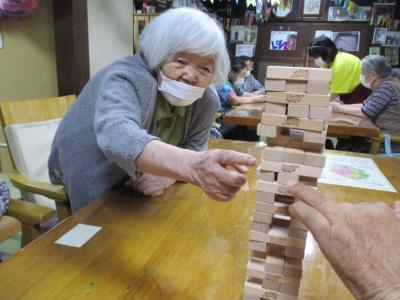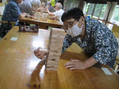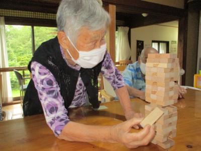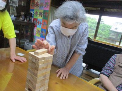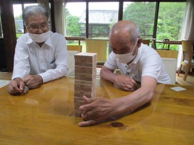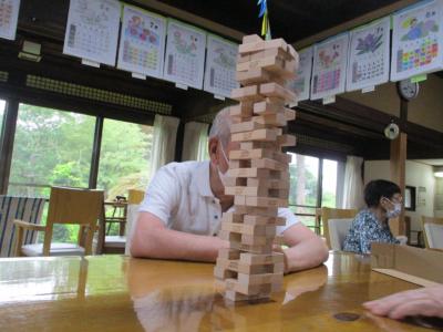 なかなか馴染みのなかったジェンガも幸望庵ではもうプロ並みの父と母