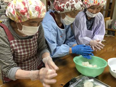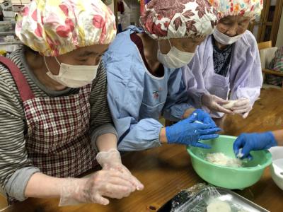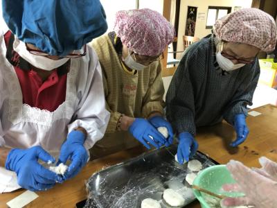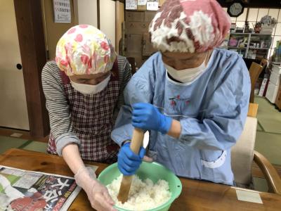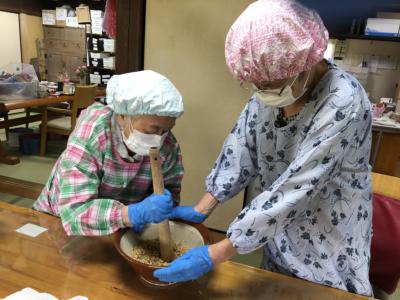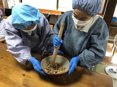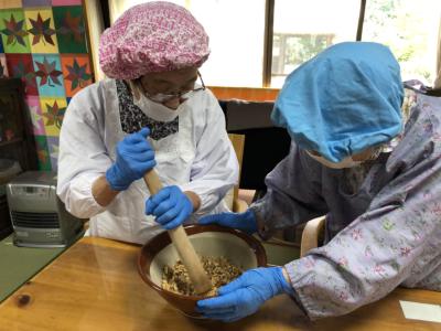 今日はみんなで“五平餅作り”