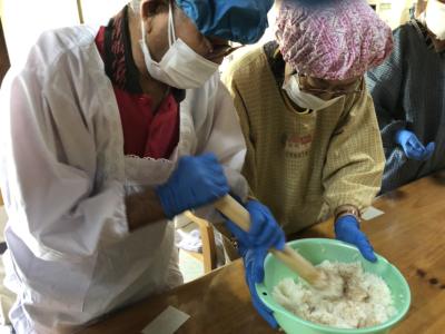 みんなで協力して順番にご飯を潰していきます!