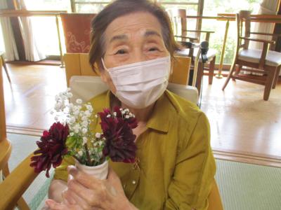 皆さん 開花したダリヤを見て笑顔いっぱいでした(*^_^*)