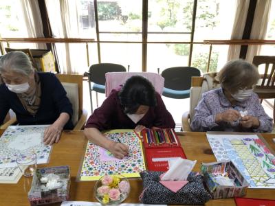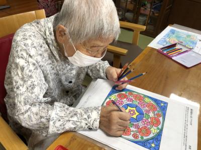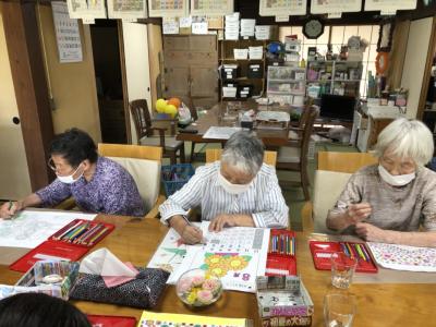 暑さに負けず脳トレの塗り絵に取り組んでいます!