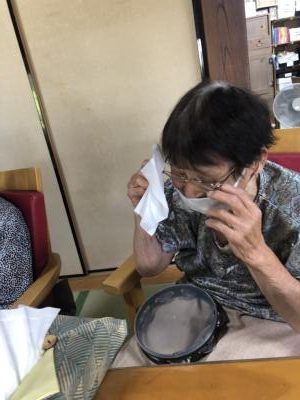 若かりし日々の思い出等を思い浮かべながら楽しくタンバリンを打ち鳴らすお母さん(*^_^*)