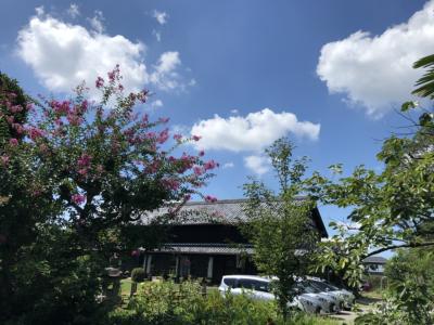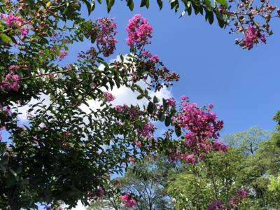 サルスベリの明るいピンク色の花も青空に映えますね✨