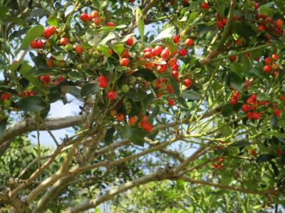 赤い小さな実や、緑色の小さな実が風に揺れ可愛らしいです