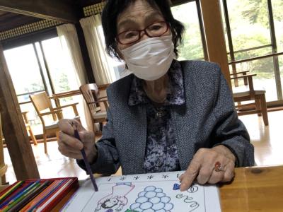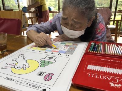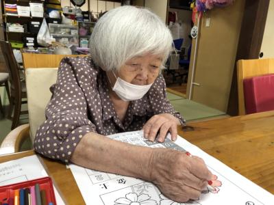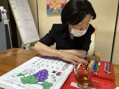 ケースの中の色鉛筆から、どの色を使おうかしら!?と悩みながらも楽しく取り組まれるお母さんでした