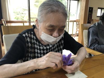少しづつ 少しづつ お花紙のお花が出来上がって行きます