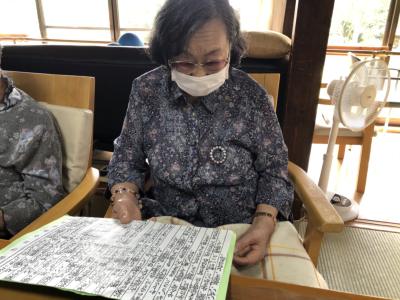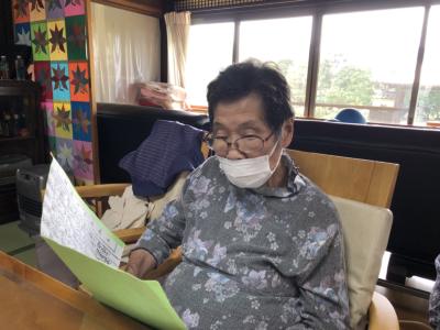 【ぼけたらあかん】の唱和では毎回大きな声で文字を目で追い