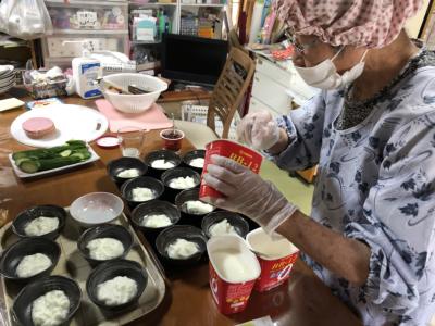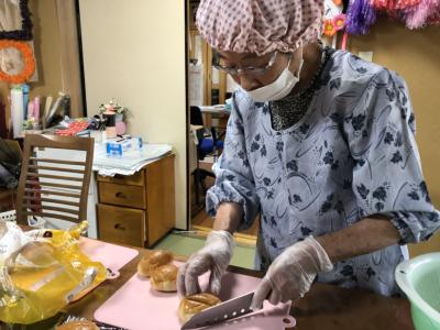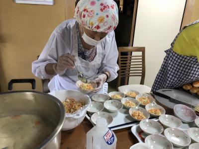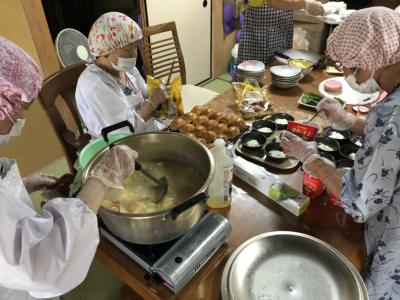 皆さん、調理器具を手にそれぞれの工程を笑顔で取り組んで下さっています