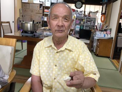 黙って👍サインのお父さん 舌鼓を打ちながらお食事中です