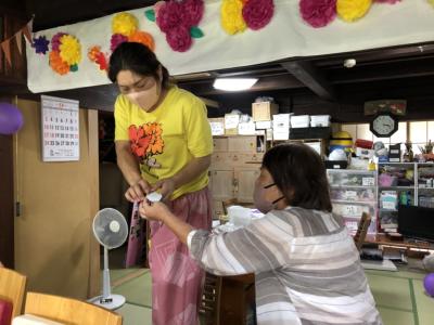 スタッフと利用者様の協力体制も心和むワンシーンです