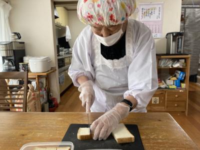 手洗い・消毒をしっかり行い、エプロン・頭巾・手袋の