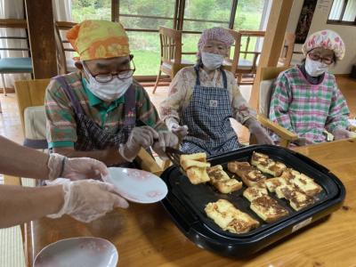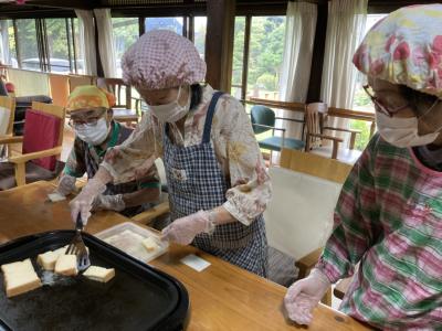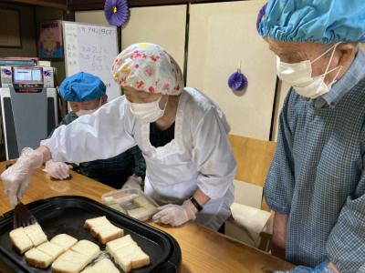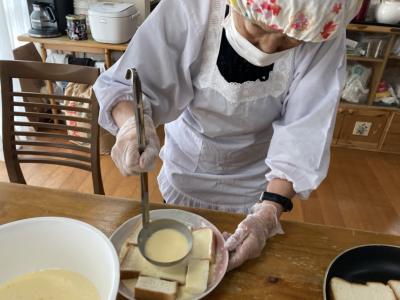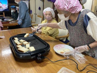 いよいよ染み込んだパンをホットプレートにのせていきます