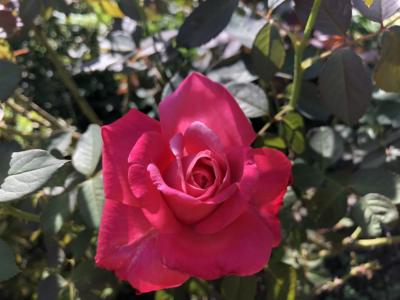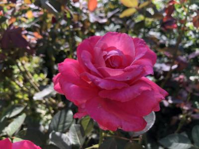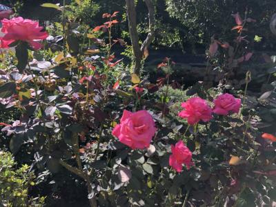 爽やかな秋風に揺れるピンクの薔薇✨