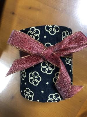 リボンを丁寧に巻いて結んでいました