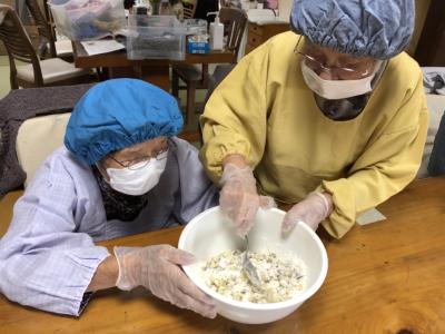 入ったさつま芋と小麦粉を使って作られ、米の代わりの