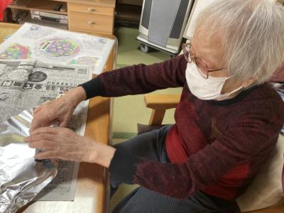洗ってサツマイモをアルミで包んで下さっています