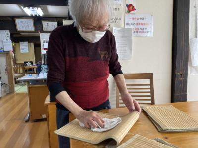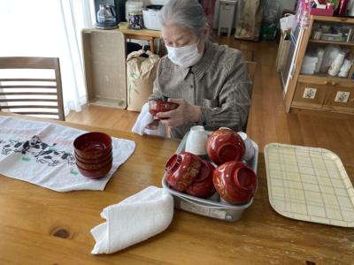 昼食後は家事動作の一環でお手伝いをして下さっています