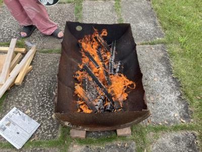 上ちゃんが庭で薪を焚いてくれました🔥