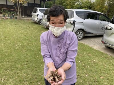母は落ち葉🍃を拾ってくれています