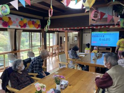 利用者様のご家族に頂いた、立派な枝付の新鮮ミカン🍊