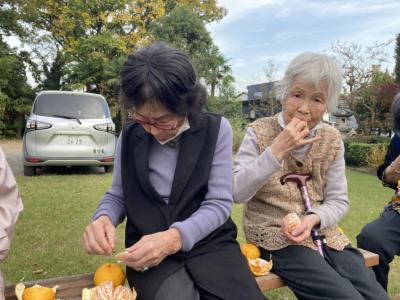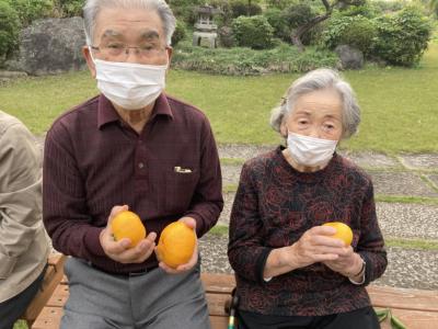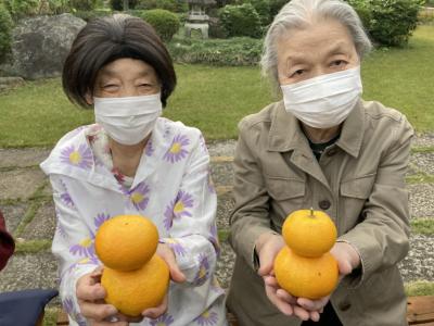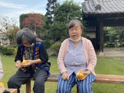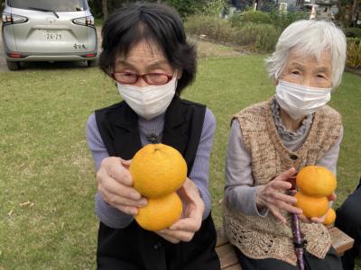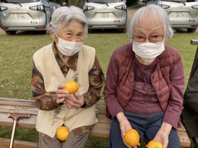 新鮮で大きいミカン、利用者様とスタッフで美味しく頂き