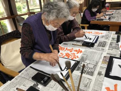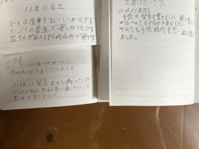 振り返り日記には久しぶりに行なった書道の感想が多く書かれていました