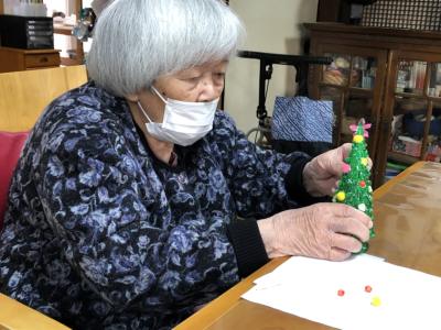 ツリーをくるくる回してみたりして、バランス良く貼り付けしていました!