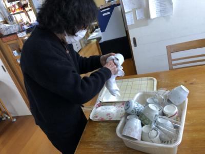 洗濯物干しや茶碗拭きをして下さる働き者の母。