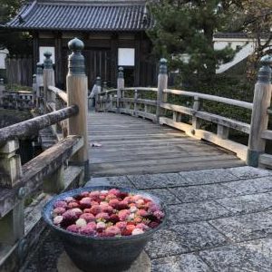 お堀の橋の入り口にも可愛い花手水がありました