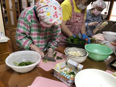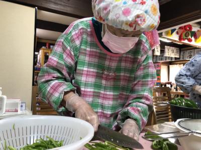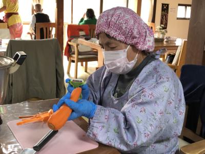 身支度を整え、手際良く野菜のカットや下ごしらえを行って下さる皆さんです!