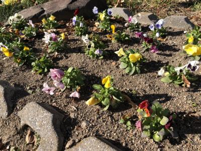 オーナーが植えて下さったパンジーが綺麗に咲いて皆さんをお出迎えぴかぴか (新しい)