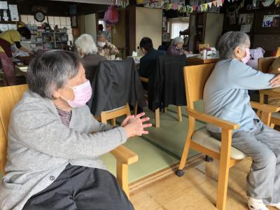 笑顔いっぱいのレクリエーションを行っていきたいと思いますわーい (嬉しい顔)指でOK