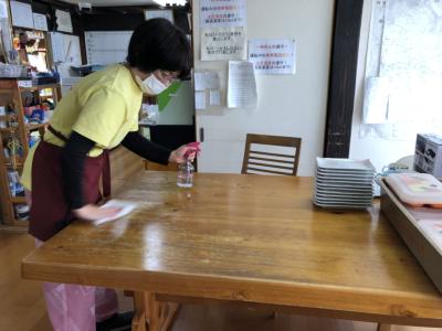 昼食準備の前には必ず消毒をし、安全を確保して準備を行っていますひらめき
