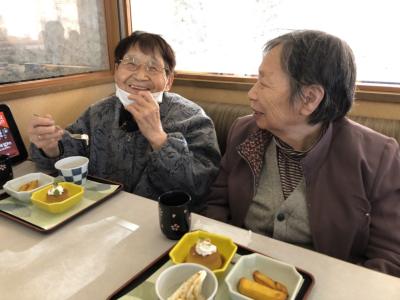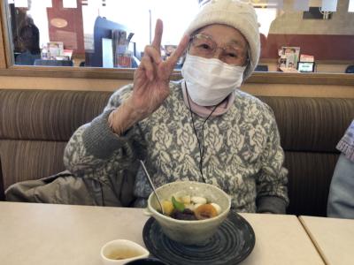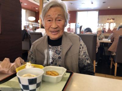午後のおやつ外食を楽しみにわーい (嬉しい顔)午前中には看護士さんと一緒に機能訓練を頑張りましたdouble exclamation