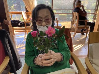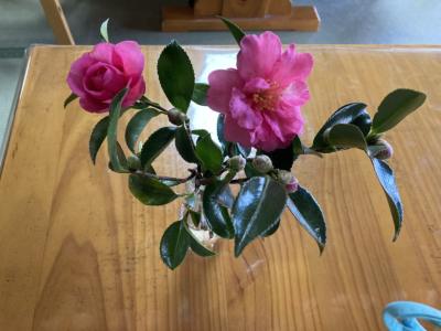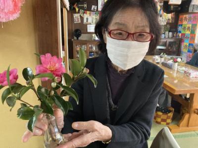 利用者さんのご自宅に咲いているサザンカをお裾分にあずかり