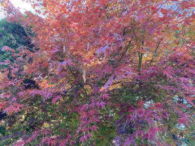 近くでは紅葉の葉が紅く色づき、陽の光があたりキラキラととっても美しいんですよ