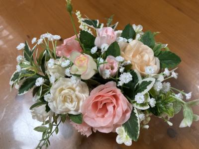 フラワーアレンジメントでは、生花や造花でアレンジを変えながら