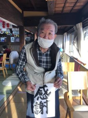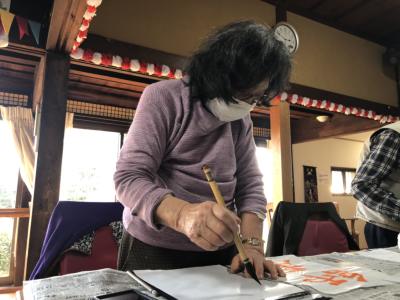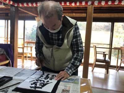 筆を休め笑顔を浮かべるお父さんも、充実感を感じながら書道に取り組まれていたようです